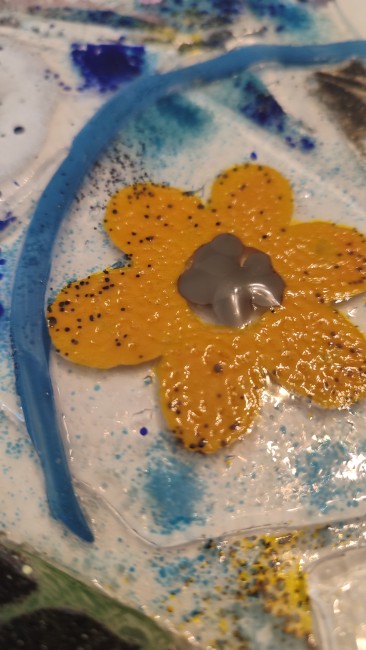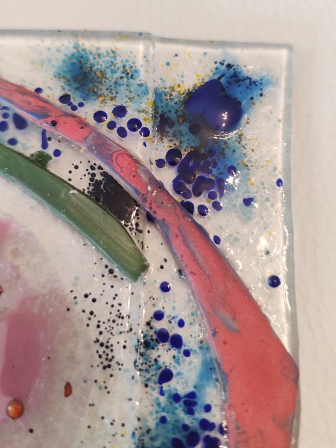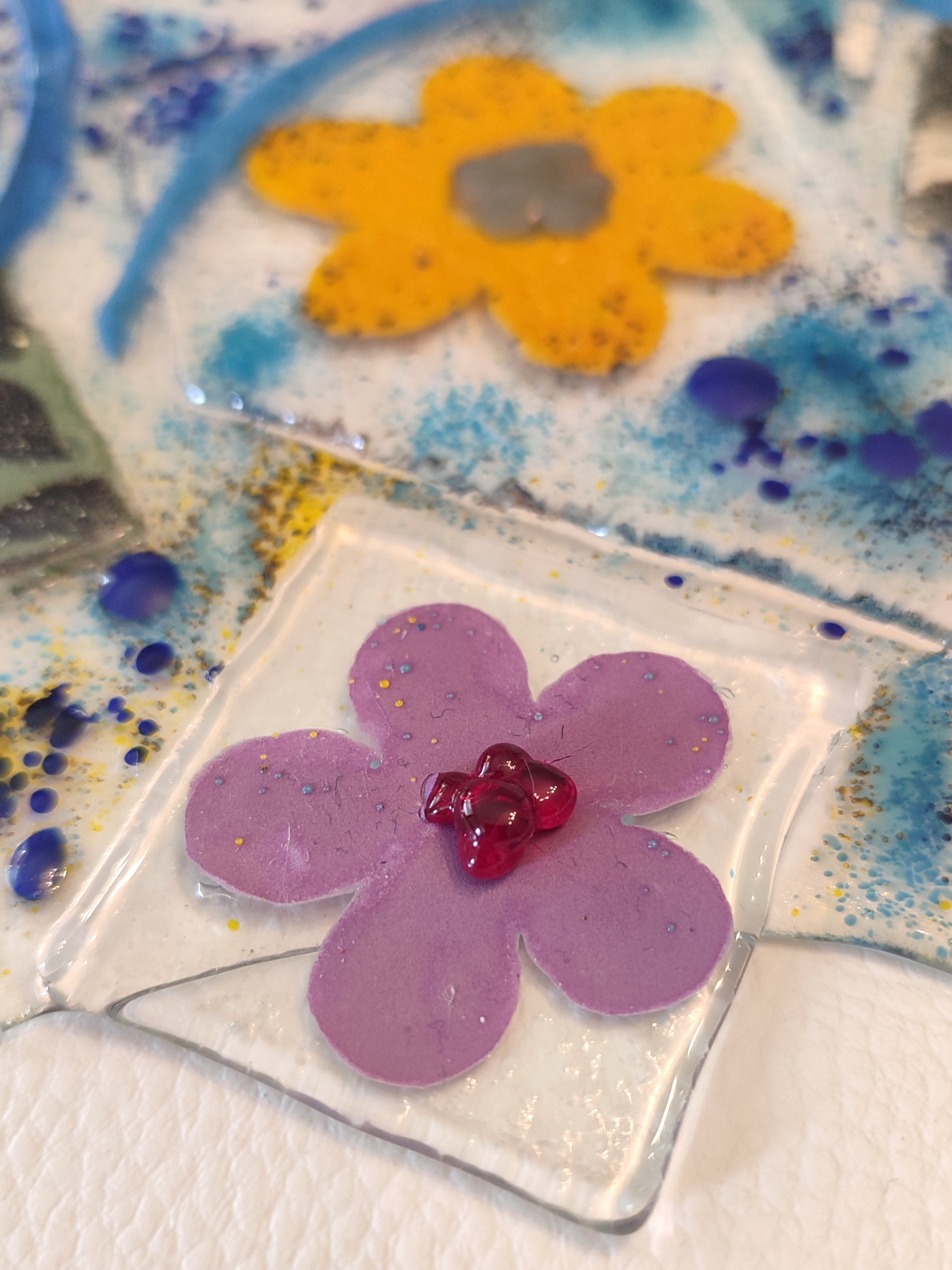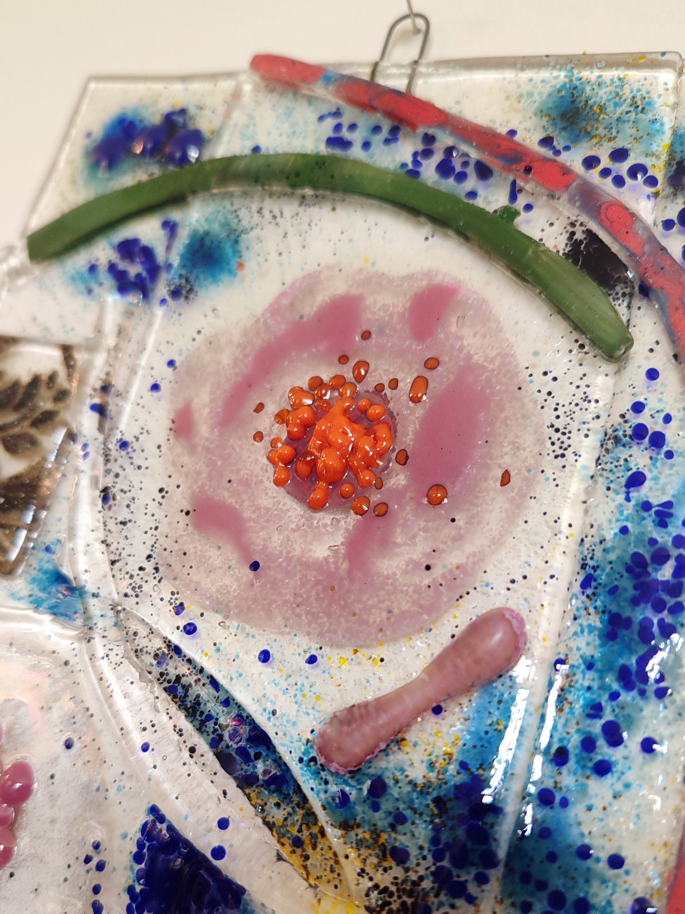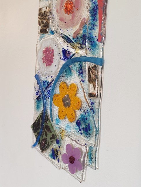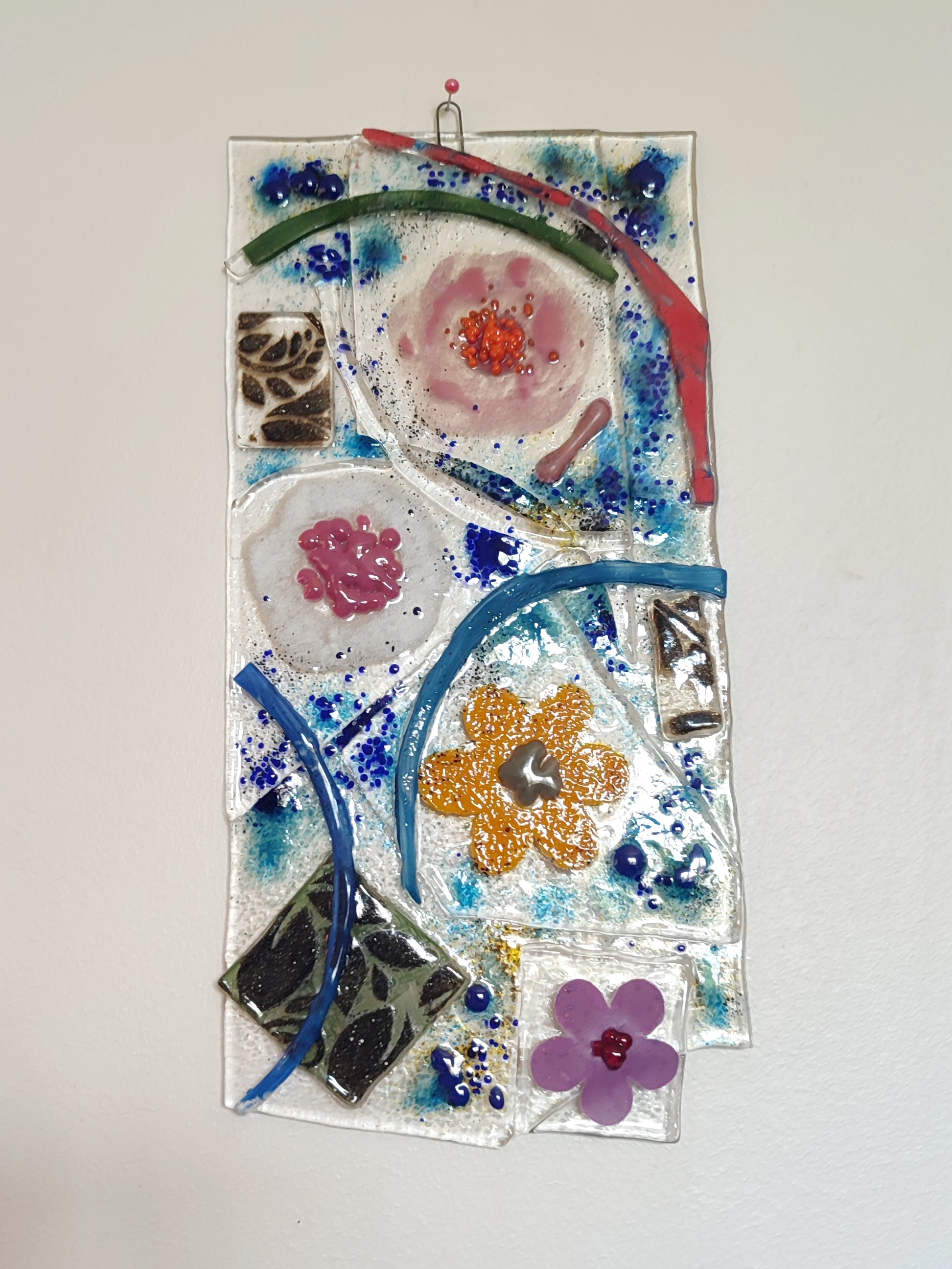 Cette décoration murale est unique, réalisée en verre fusionné. Pour la réaliser, j'ai utilisé différentes techniques, différents verres.