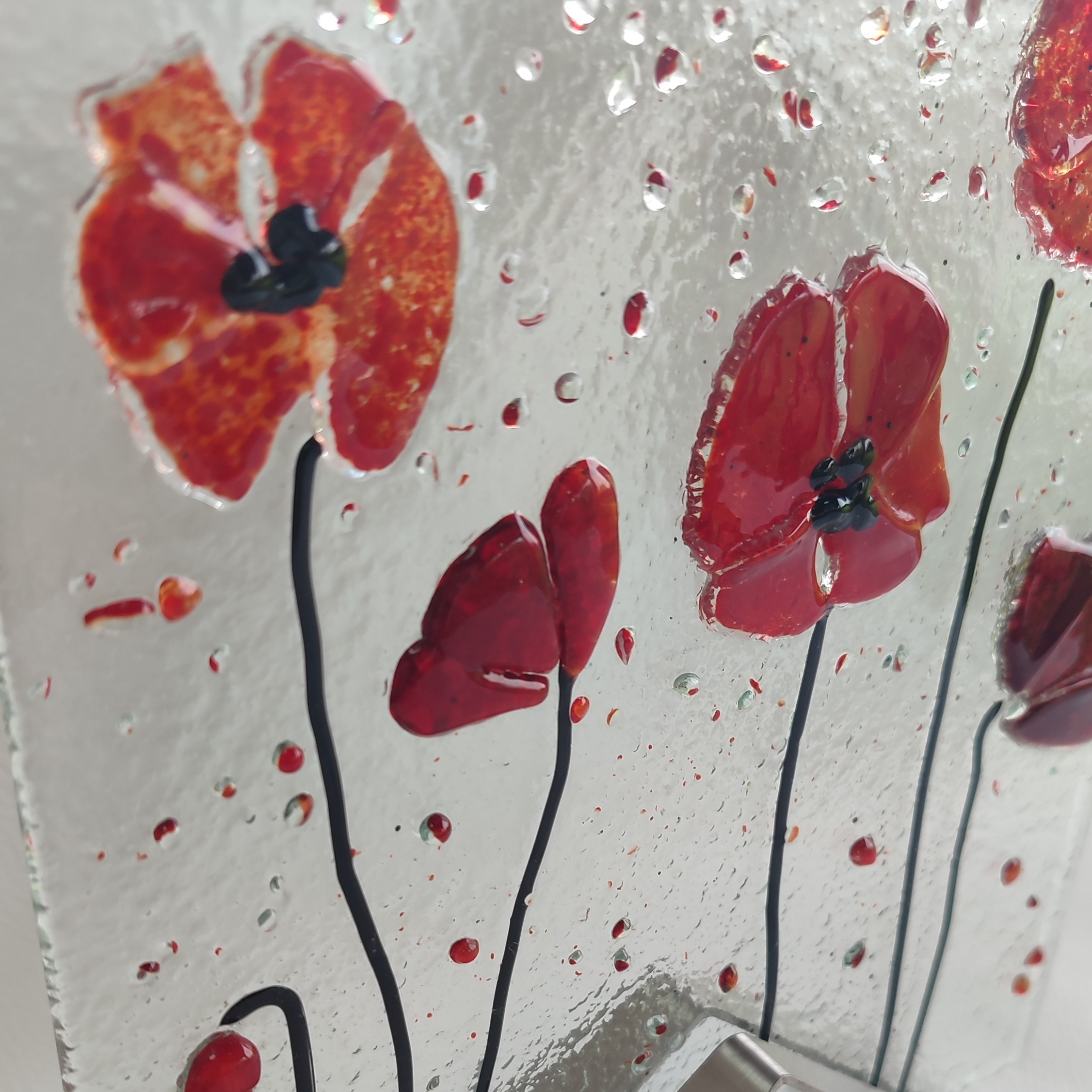Les 4 verres de cette lanterne.sont différents. Ils représentent différents coquelicots.