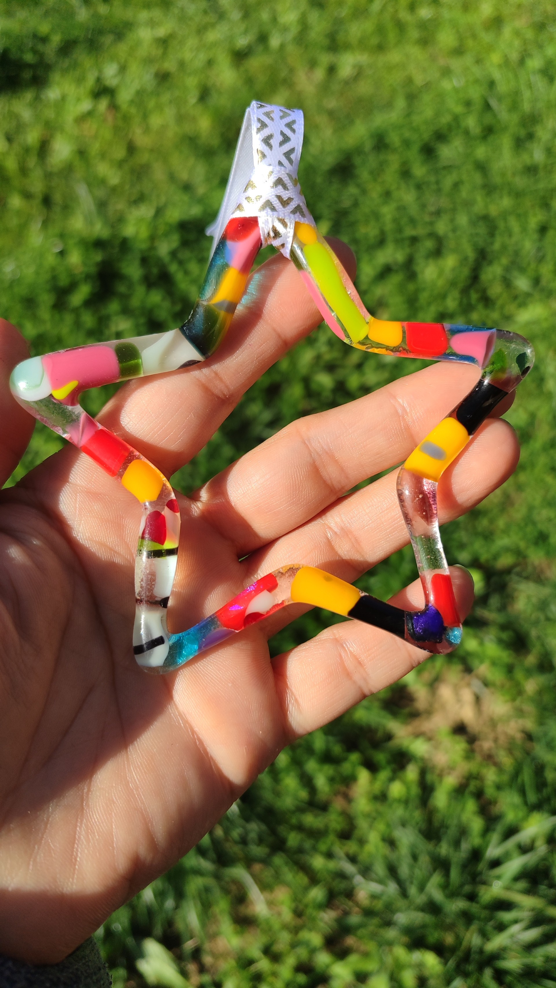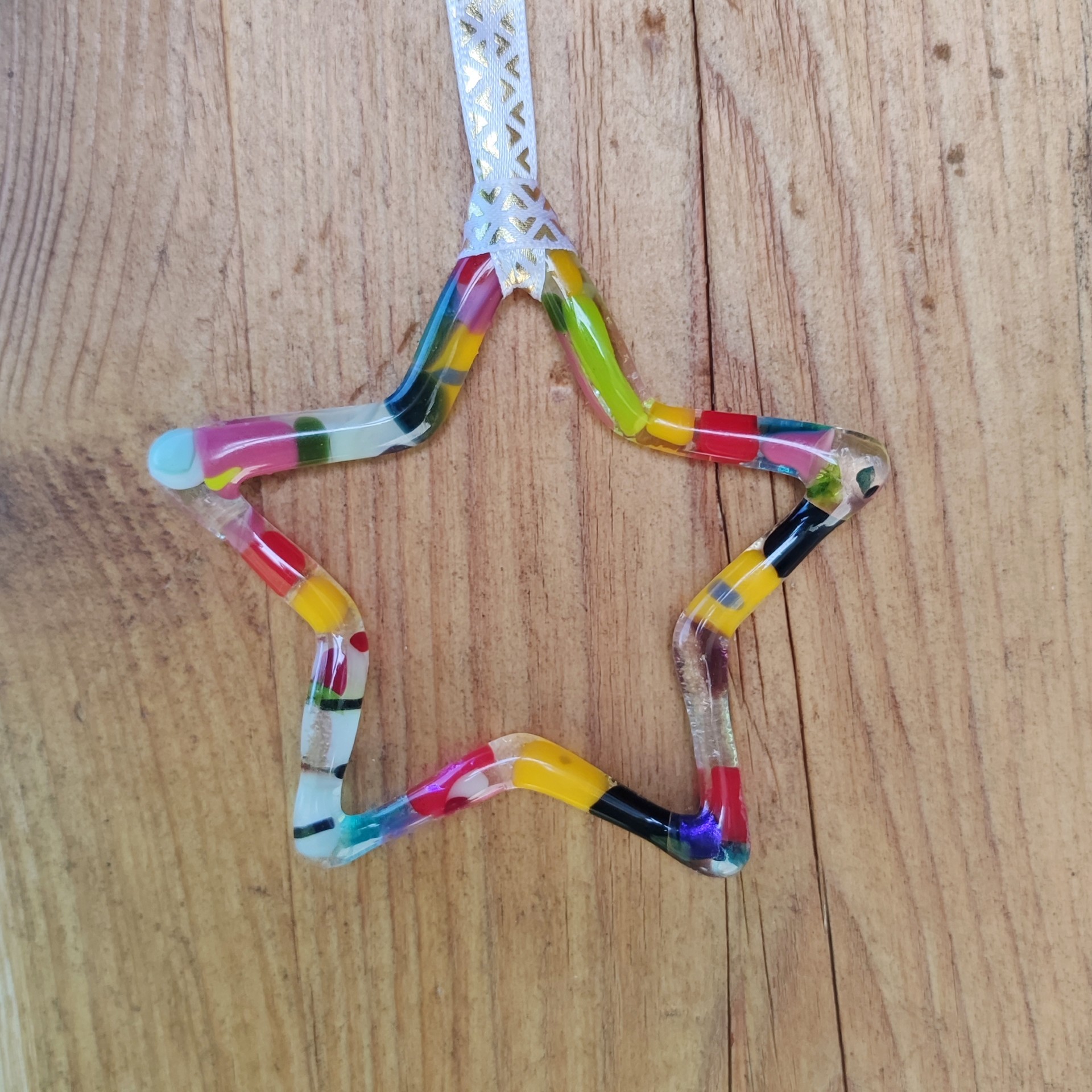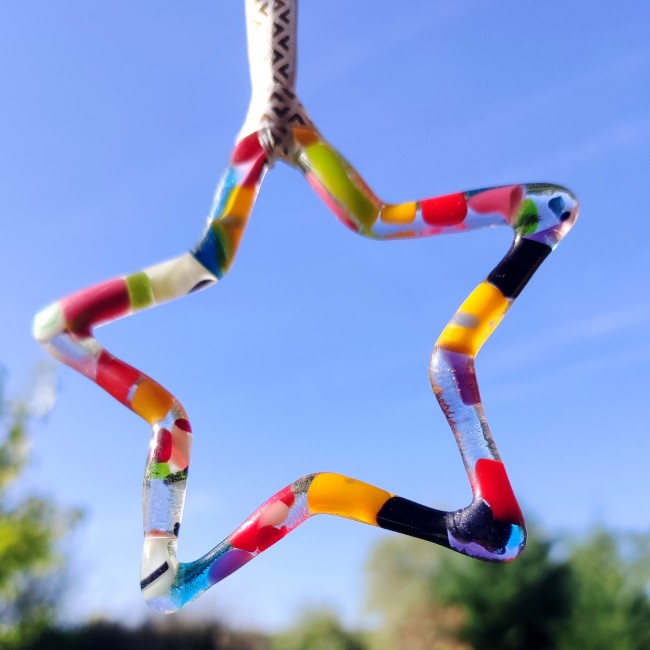 Chaque étoile est réalisée en verre fusionné, chaque étoile est unique. Elle est fine et délicate. C'est un joli ornement, pour décorer votre sapin ou votre intérieur.