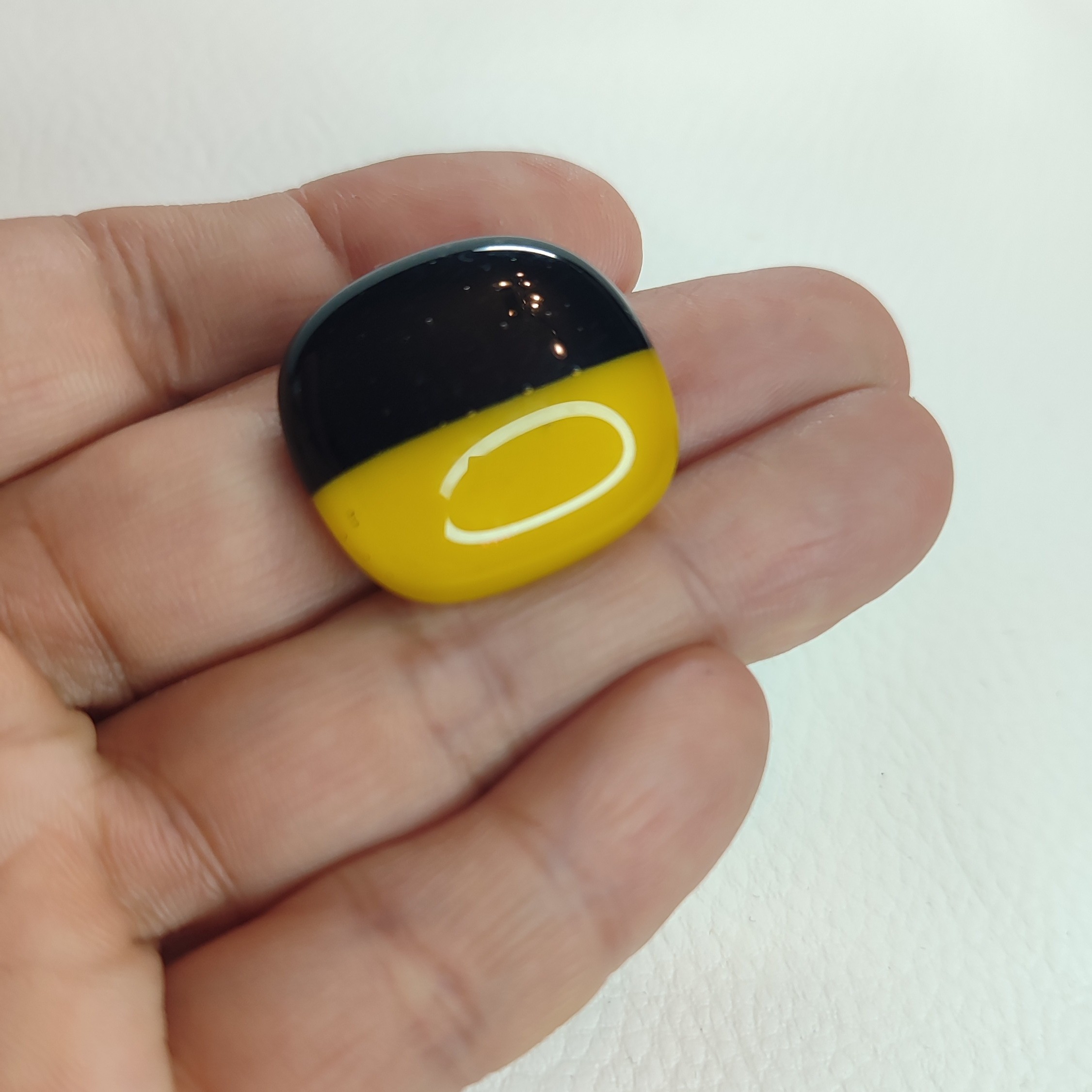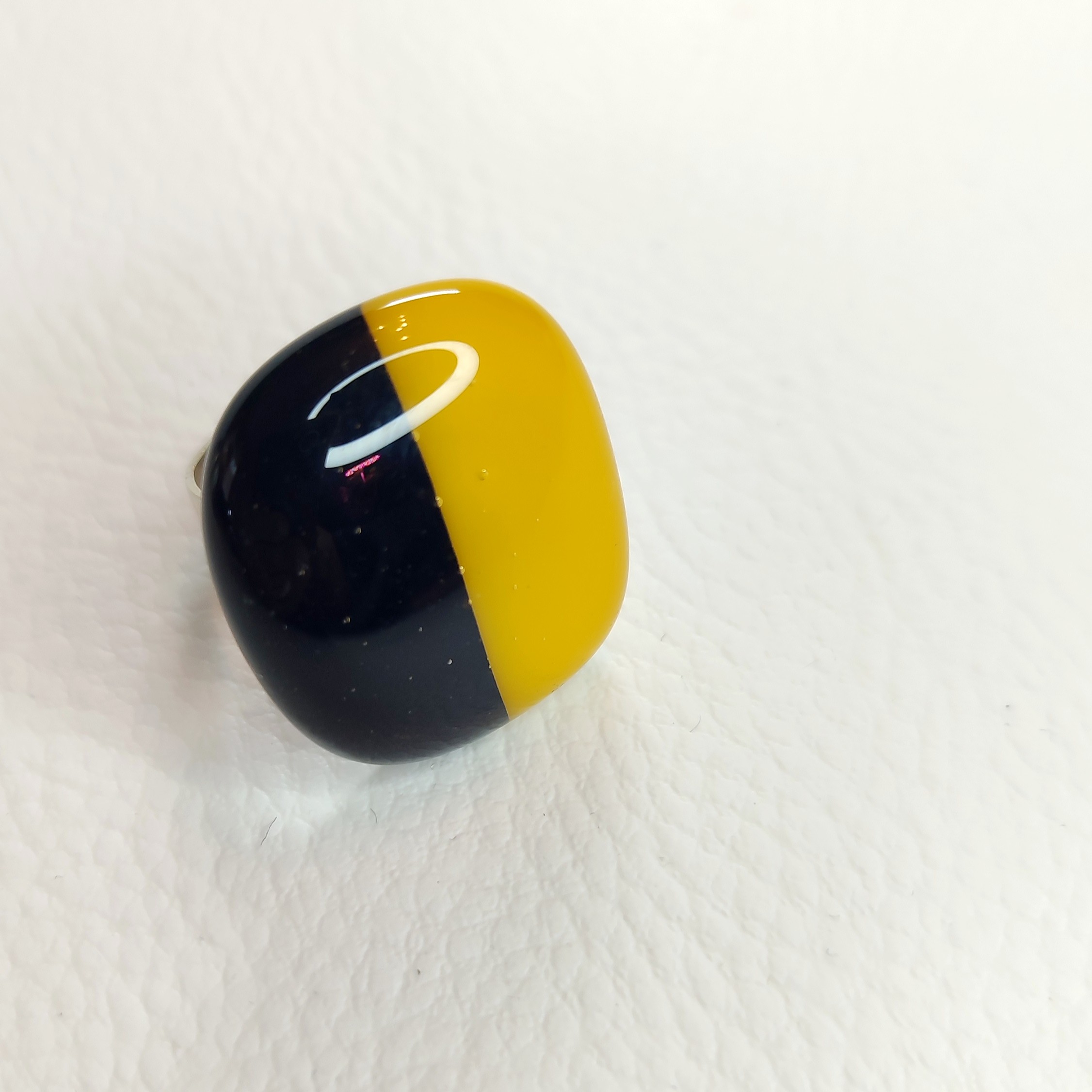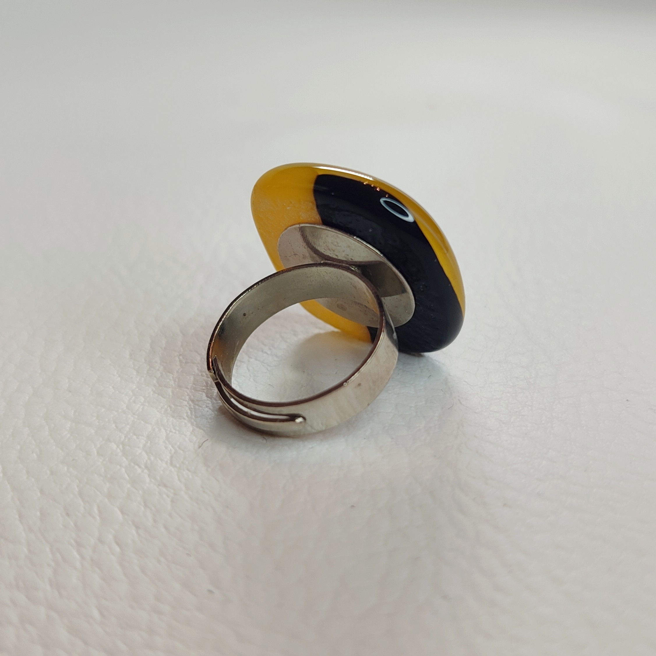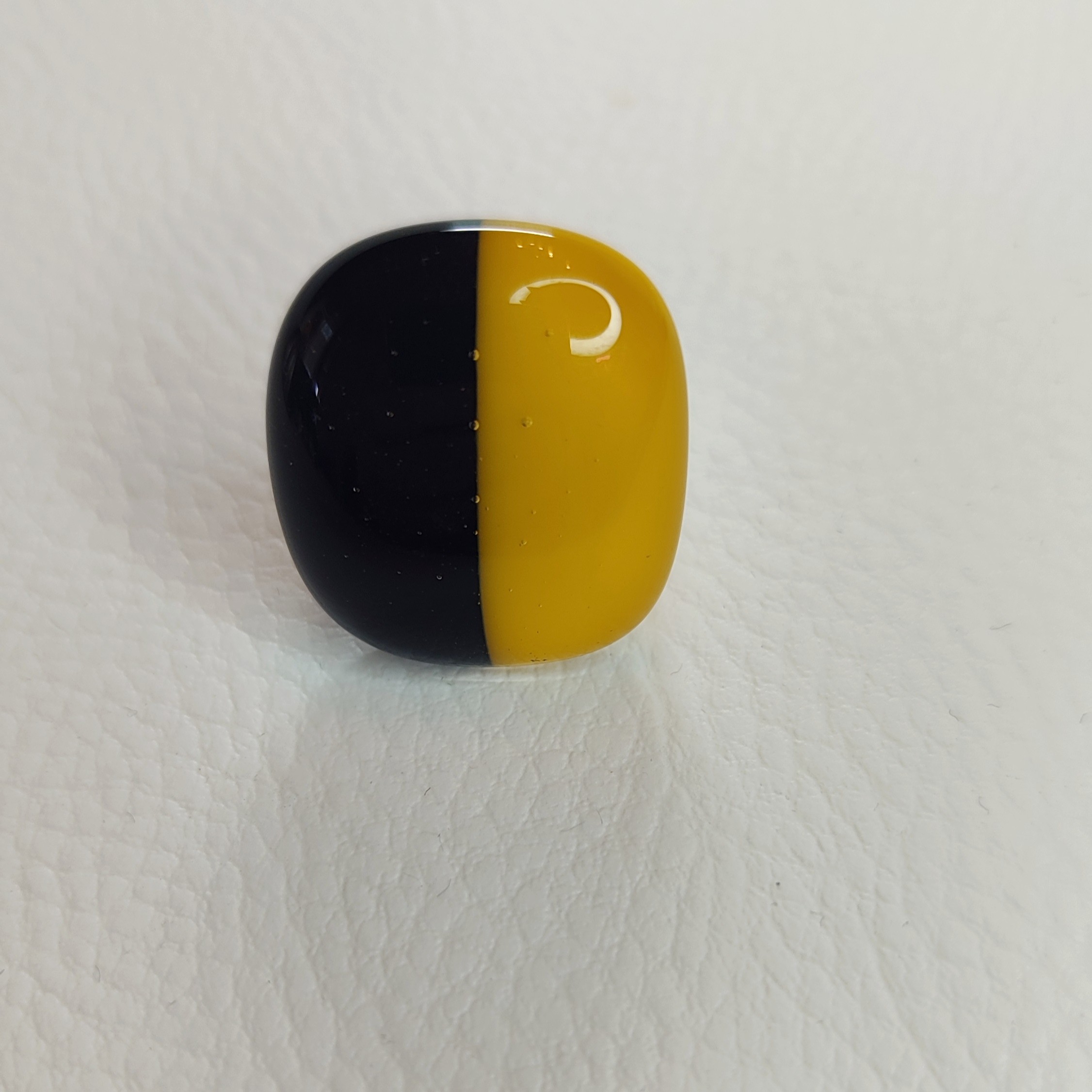 Le cabochon est bicolore, noir et jaune foncé.