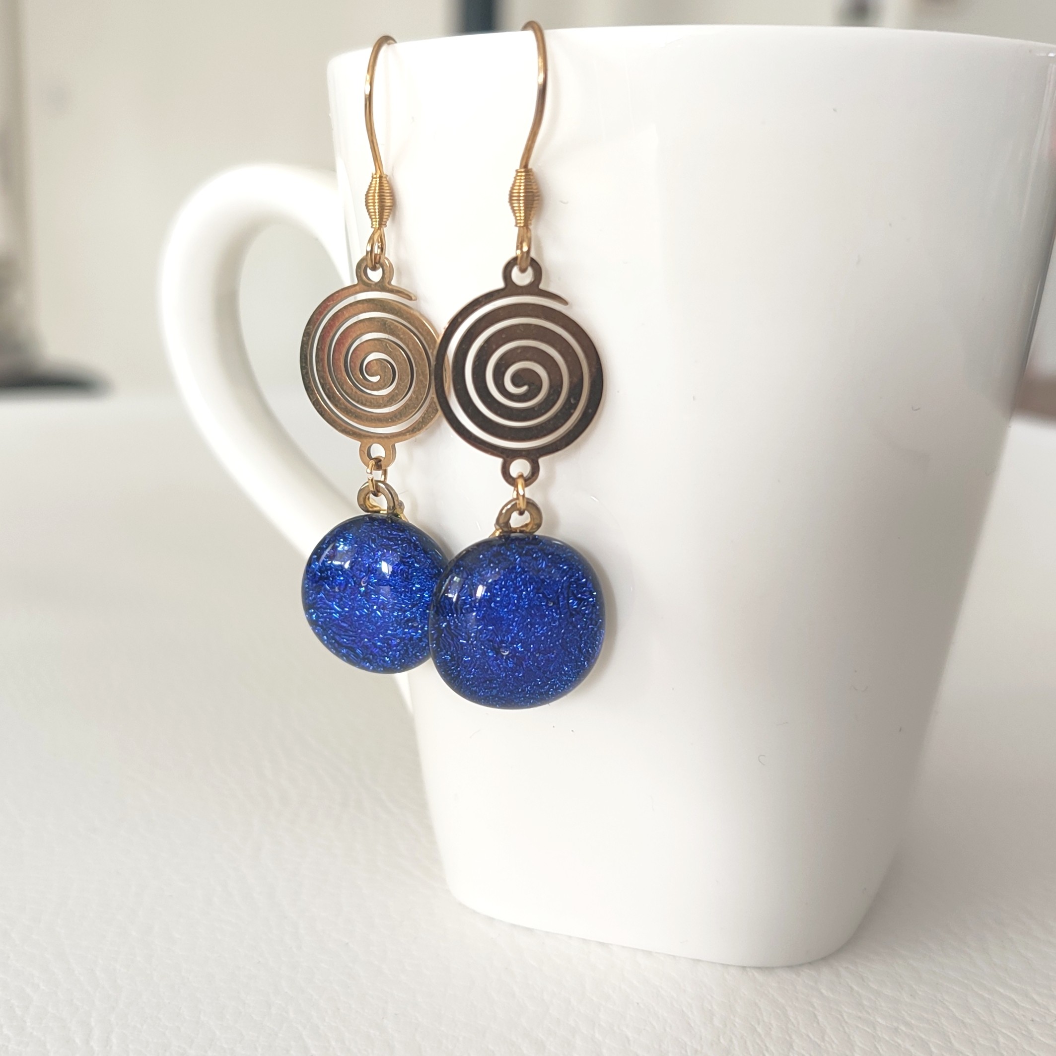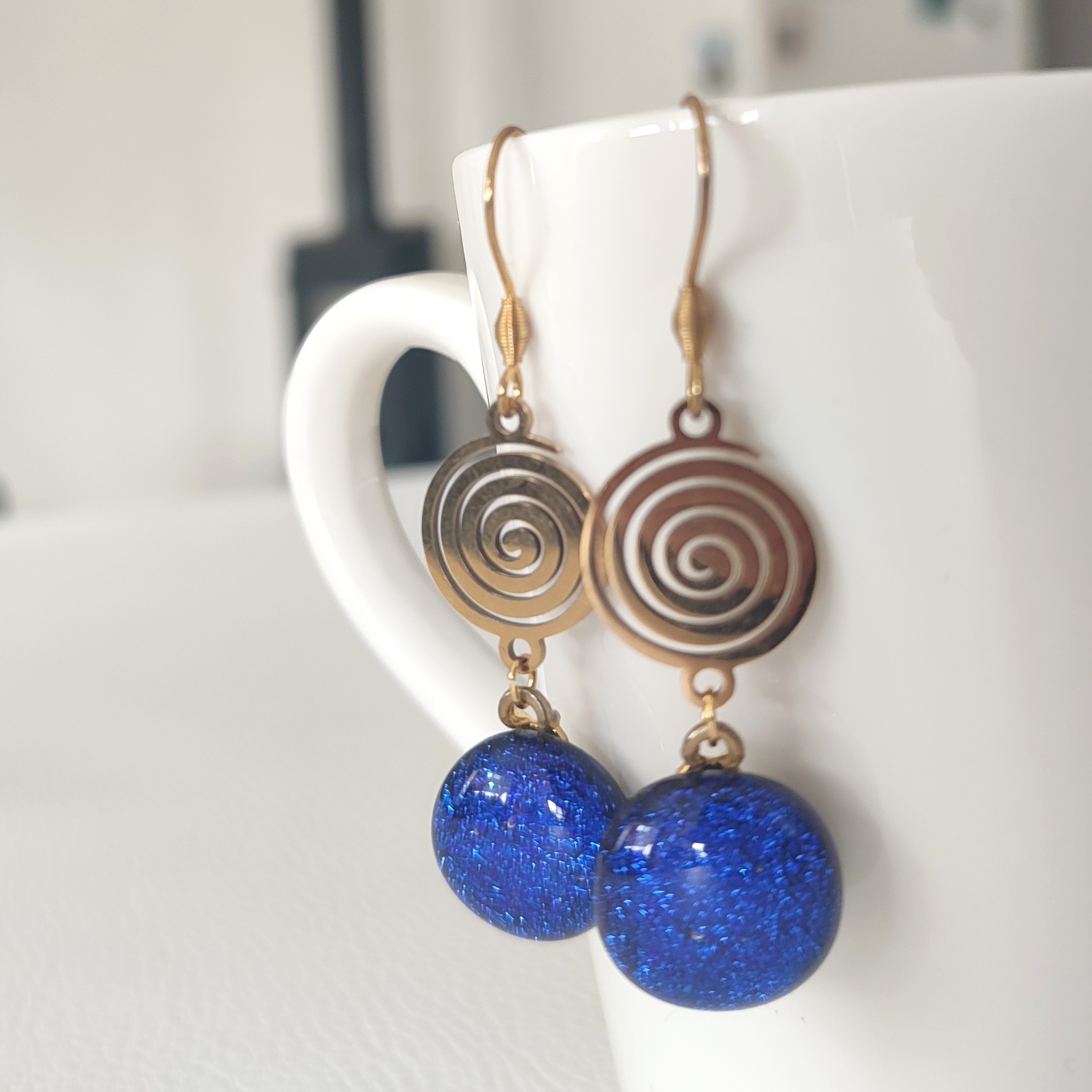 Ces boucles sont dorées avec des cabochons bleus profonds, elles sont scintillantes comme des milliers d'étoiles, elles sont parfaites avec leur tourbillon.