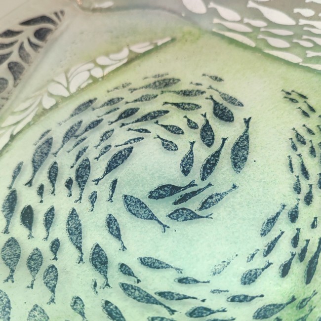 Ce plat a une légere transparence, il est encore plus beau sur une nappe blanche ou très clair. C'est un joli cadeau pour tous les amoureux de la mer et de l'artisanat.