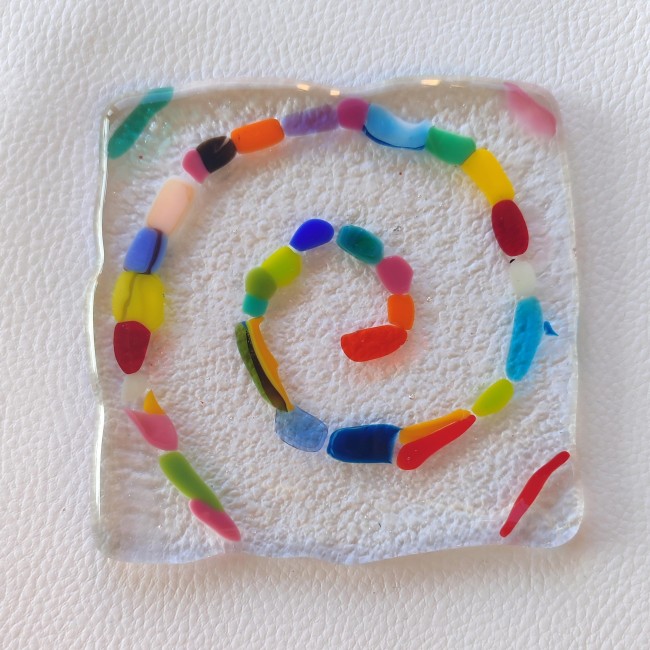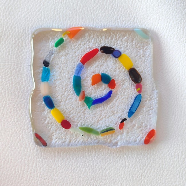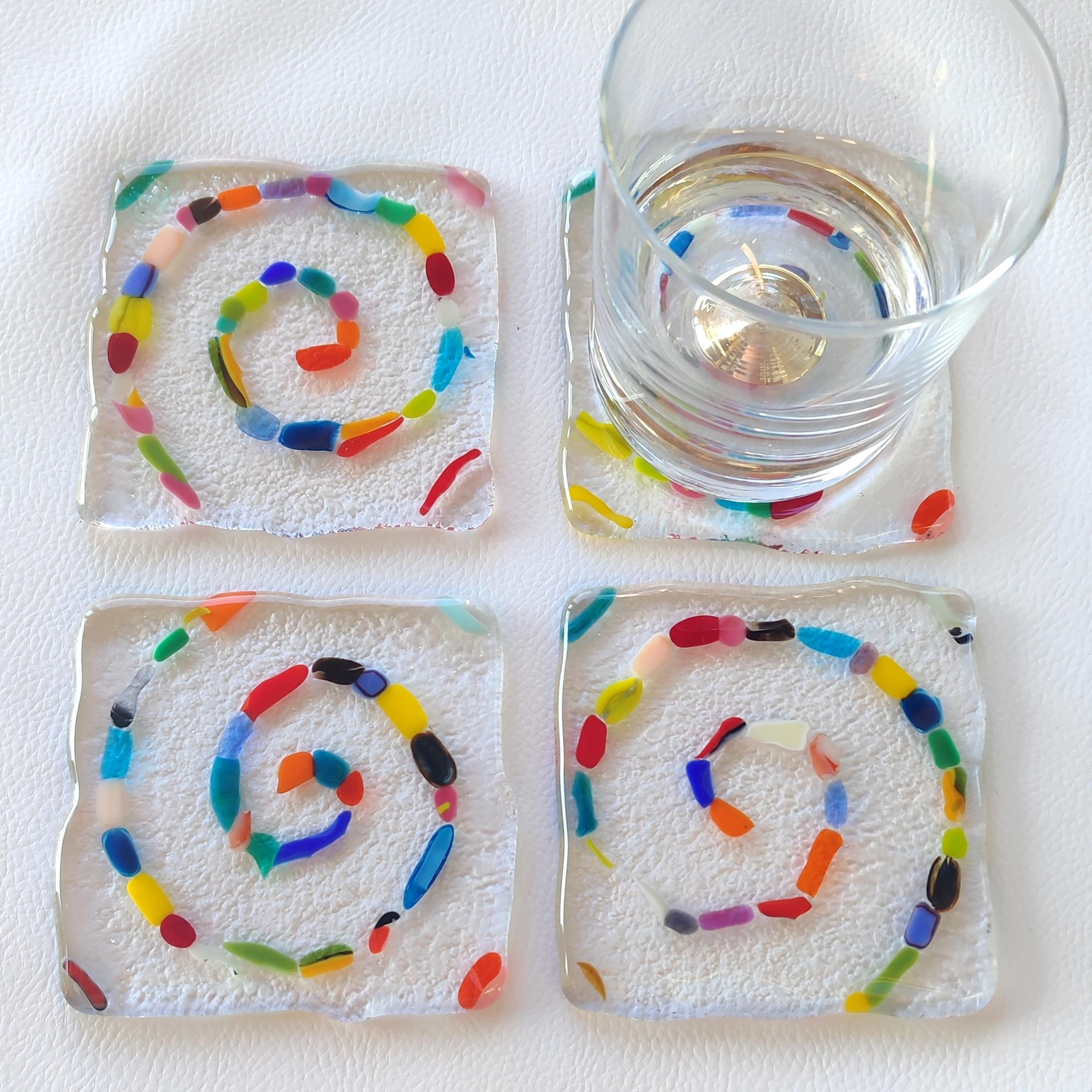 Les 4 sous-verres sont colorés, chacun a un tourbillon dessus.