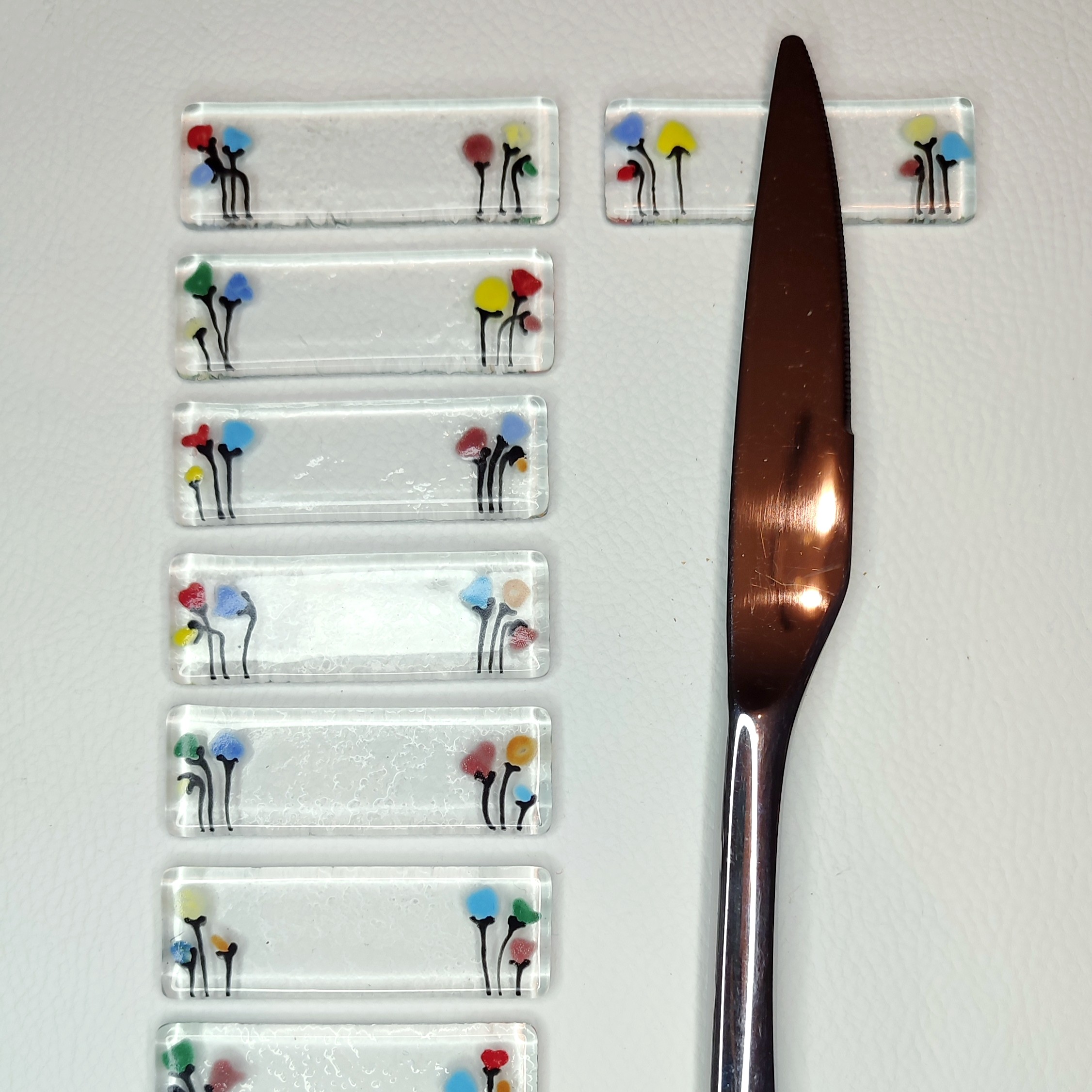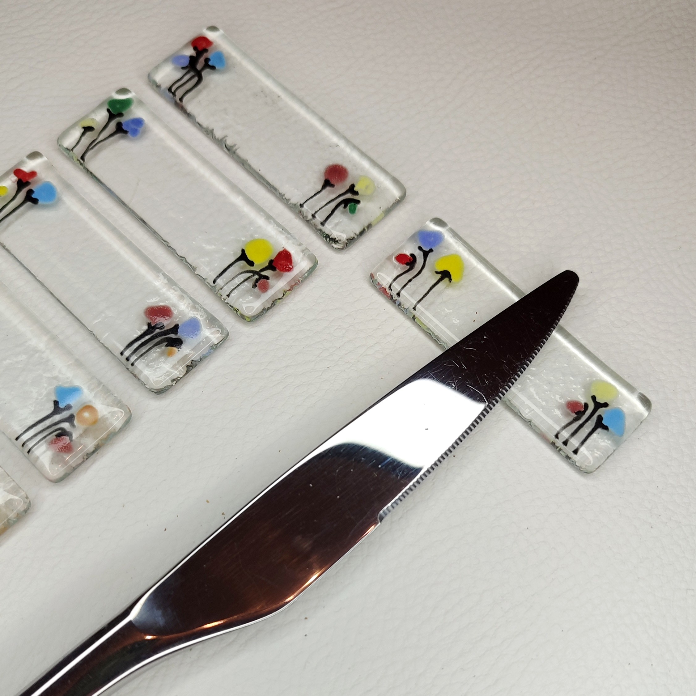 Ces porte-couteaux décoratifs sont une excellente u artisanale pour les amateurs d’art de la table, de décoration intérieure et de créations originales en verre. Ils subliment vos repas et apportent une note florale et colorée à chaque table.