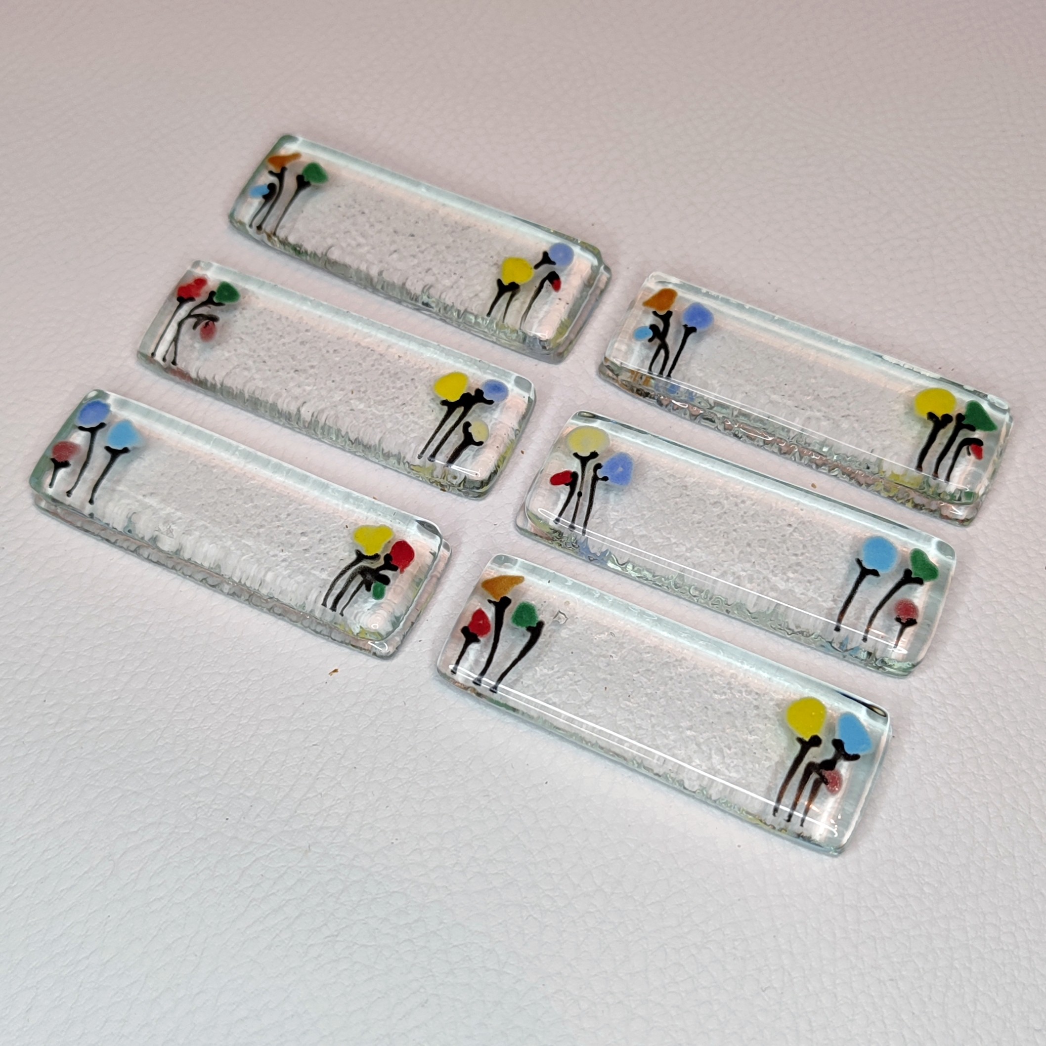 Apportez une touche d’originalité et d’élégance à votre table avec ces porte-couteaux en verre artisanal transparent, décorés de petits bouquets de fleurs multicolores intégrés dans le verre. Réalisés à la main, ils incarnent un savoir-faire artisanal unique et une décoration de table raffinée.