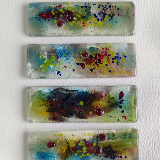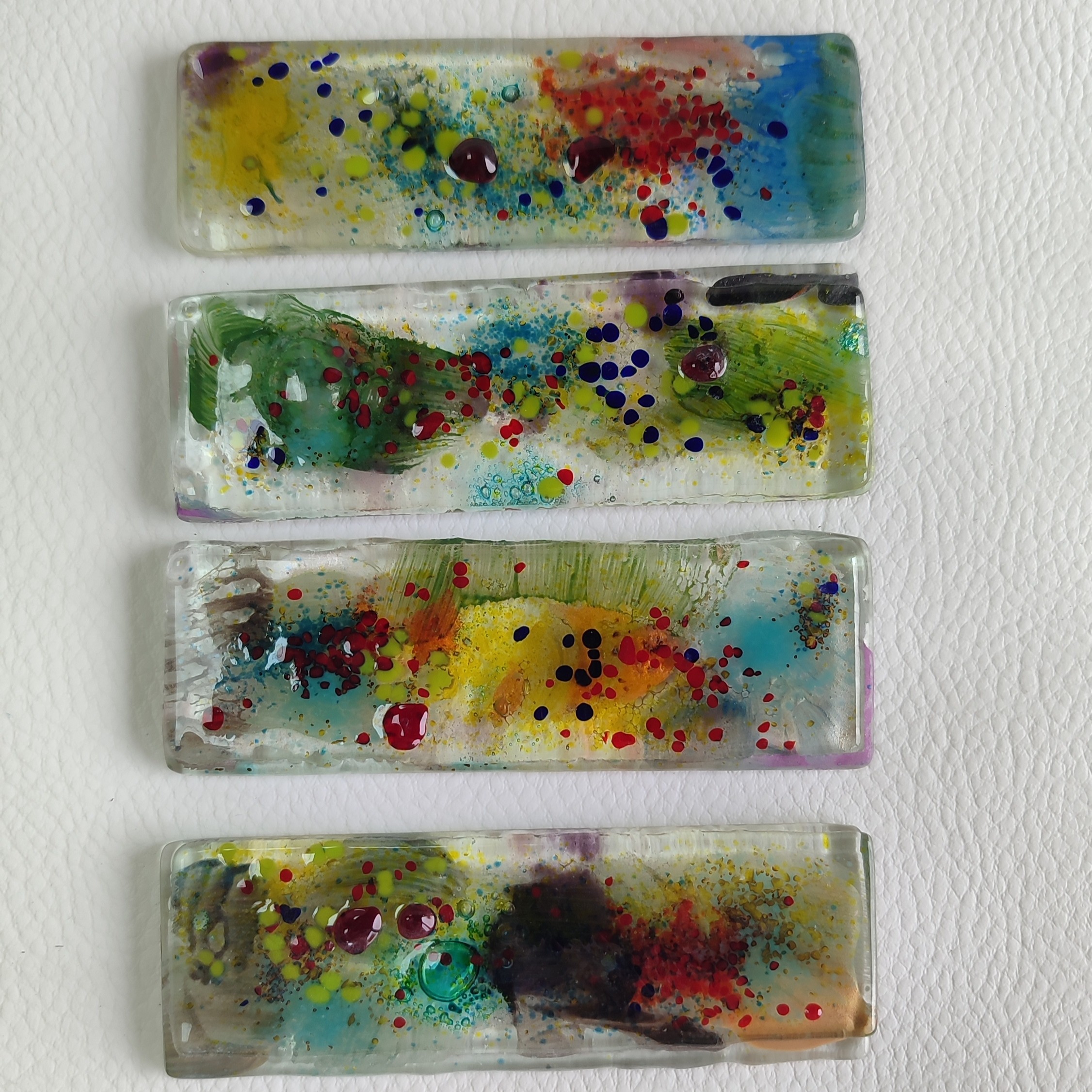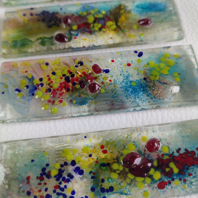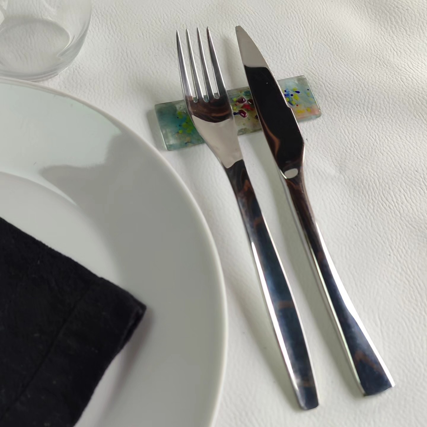 Ces porte-couteaux sont multicolores, ils sont tous uniques, j'ai utilisé différentes techniques de fusing pour arriver à ce résultat. Je suis sûre qu ils feront sensation sur vos tables.