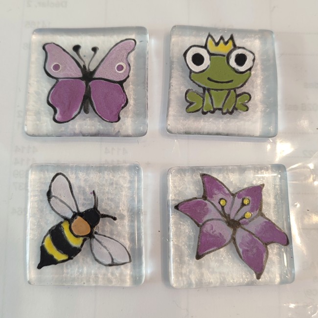 Ces magnets sont en verre fusionné, ils sont personnalisables. Chaque aimant est assez puissant pour bien tenir. Ils peuvent être utilisés dans de nombreux endroits, cuisine, frigo, bureau, ...