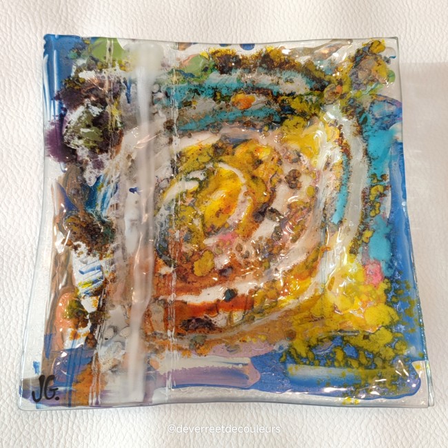 Plat carré, original, multicolore, artisanal et unique