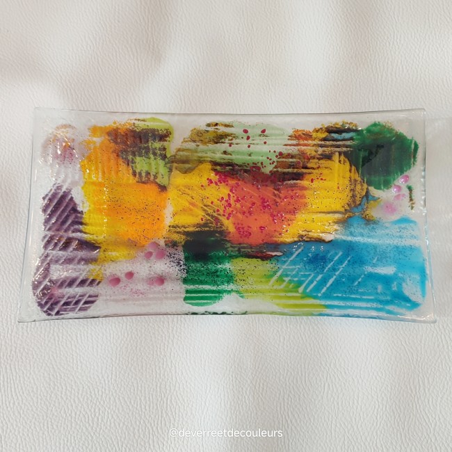 Plat rectangulaire - arc-en-ciel- artisanat - unique - couleur