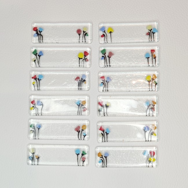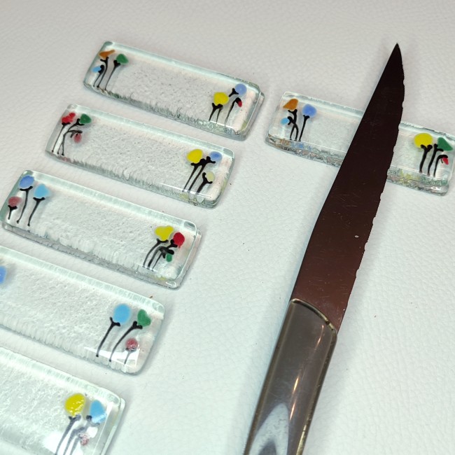 Lot de porte couteaux multicolores, verre fusionné, arc-en-ciel, verre dichroïque- realisation artisanale, France